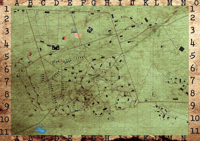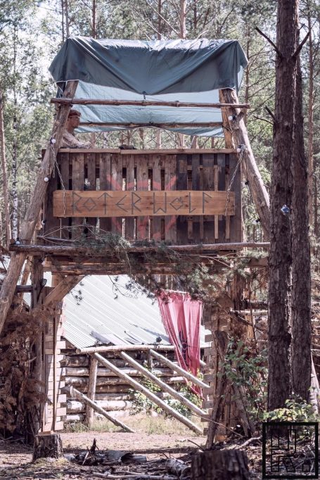Unser Lager liegt nördlich von New Hope, eine Blockhütte, ein großes Tipi und eine kleines Cottage umrundet von einem Zaun, geschützt von einem hohen Turm.