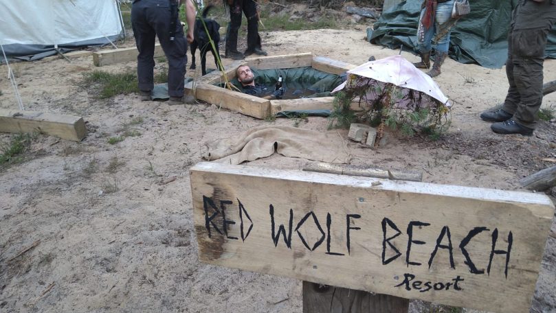 Hier liegt außerdem unser Red Wolf Beach Resort, wir haben eine Schwitzhütte, einen kleinen Pool, eine Endzeit-Küche, Endzeit- Minigolf und die Yoga-Area nicht vergessen.